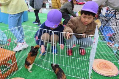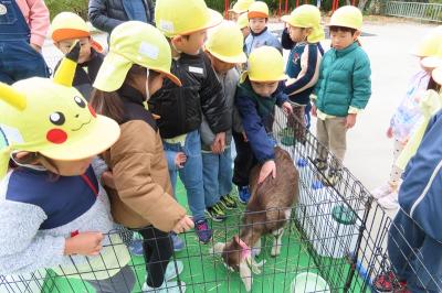 ヤギのお部屋に入って触れる事が嬉しい様子で、