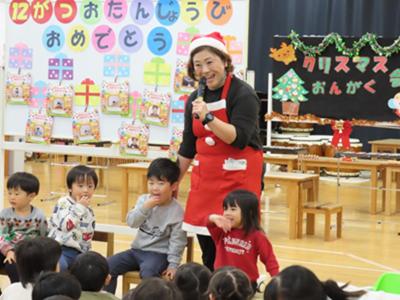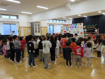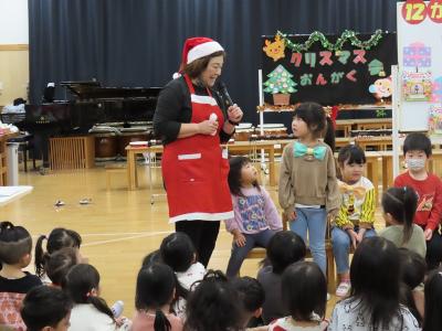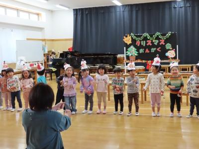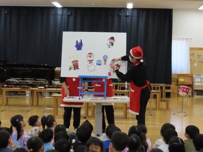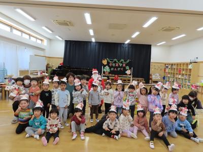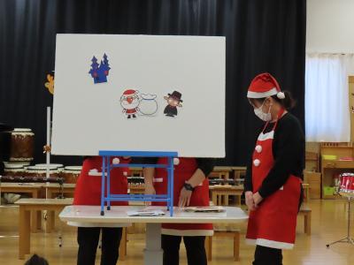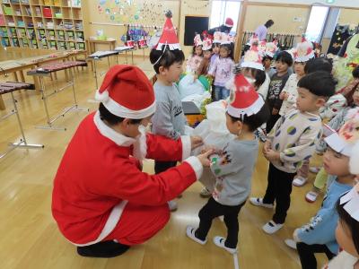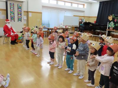 サンタさんに見てもらいながら各クラスお披露目です☆