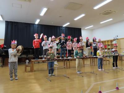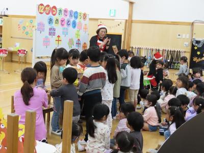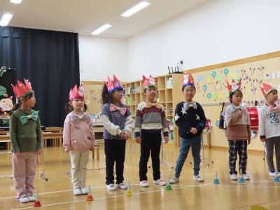 みかん組さんは、鈴を使ってピアノに合わせて鈴を鳴らし、