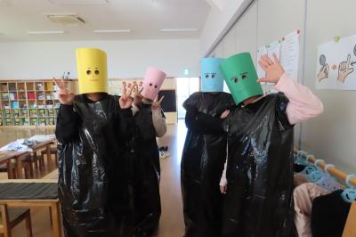みんなクラスに1度戻り、仮装やアイテムをつけて園内を