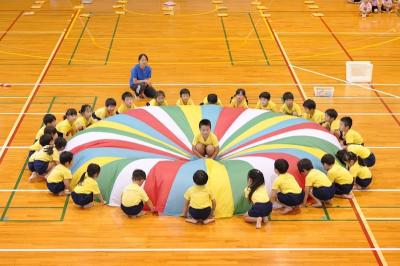 今は、園長先生とぶどう組・ばなな組さんたちで